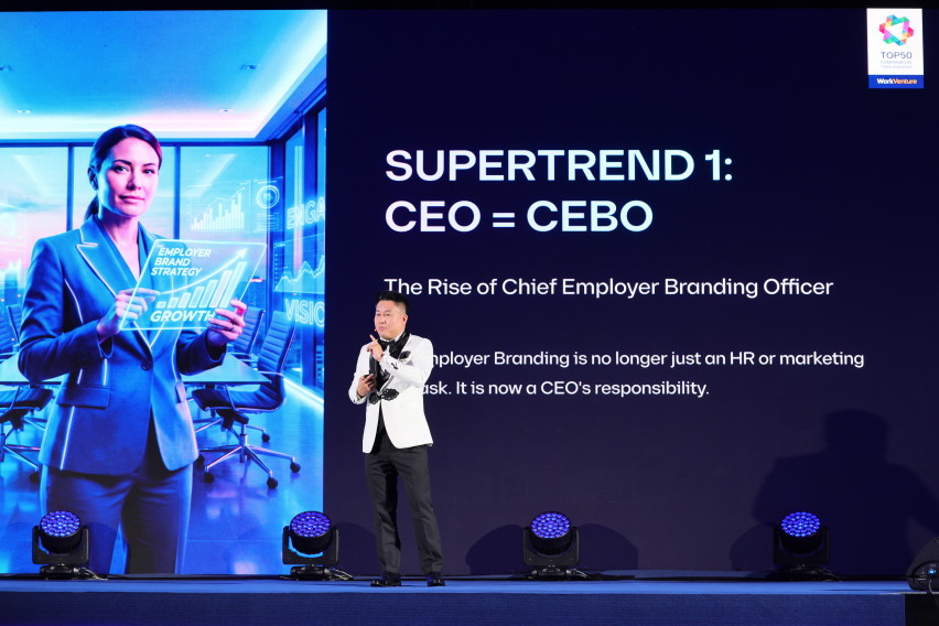 บนเวที Top50 Companies in Thailand 2026 คุณจีรวัฒน์ ตั้งบวรพิเชฐ ที่ปรึกษาอาวุโสด้านการสร้างแบรนด์นายจ้างจาก WorkVenture ได้ขึ้นมาเติมเต็มจิ๊กซอว์ชิ้นสุดท้ายต่อจาก ดร.ทนัย ชรินทร์สาร เพื่อชี้ให้เห็นว่าในวันที่โลกธุรกิจต้องเลือกระหว่าง "ความอยู่รอด" หรือ "ความยั่งยืน" คำตอบที่แท้จริงจะเกิดขึ้นไม่ได้เลยหากขาดทรัพยากรที่สำคัญที่สุดอย่าง "คน" แต่คำถามคือใครล่ะที่เป็นคนดึงดูดคนเก่งเหล่านั้นเข้ามา? คำตอบไม่ได้อยู่ที่ฝ่าย HR อีกต่อไป แต่มันอยู่ที่ผู้นำบนยอดพีระมิดนั่นคือ CEO